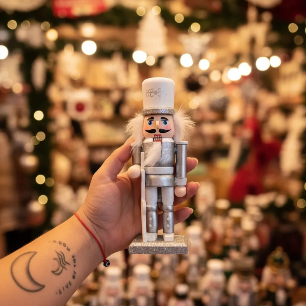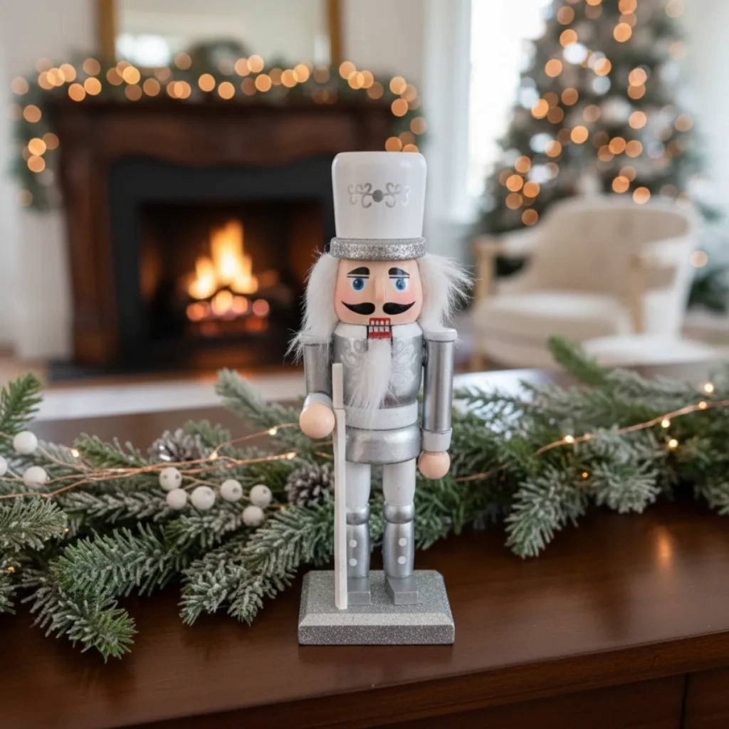El Soldadito de Madera de 16 cm en color plateado es un adorno navideño que evoca la magia de las festividades. Con su diseño clásico de cascanueces, este muñeco es ideal para complementar la decoración de su hogar, aportando un toque elegante y tradicional a su ambiente navideño.