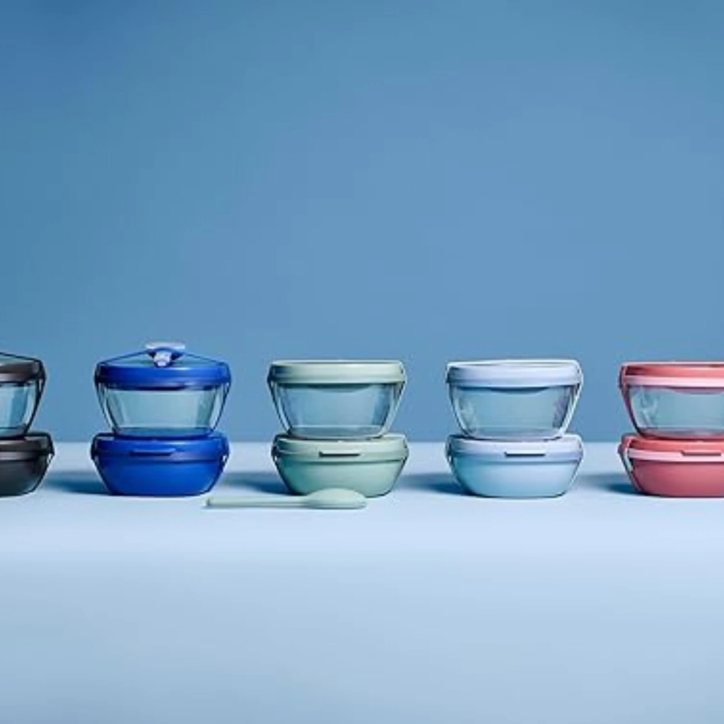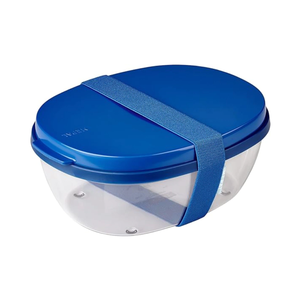 Caja de ensalada: la caja de ensalada Ellipse de Mepal tiene un montón de espacio para una ensalada de plato principal; la caja de ensalada transparente también es lo suficientemente grande como para mezclar tu ensalada sobre la marcha