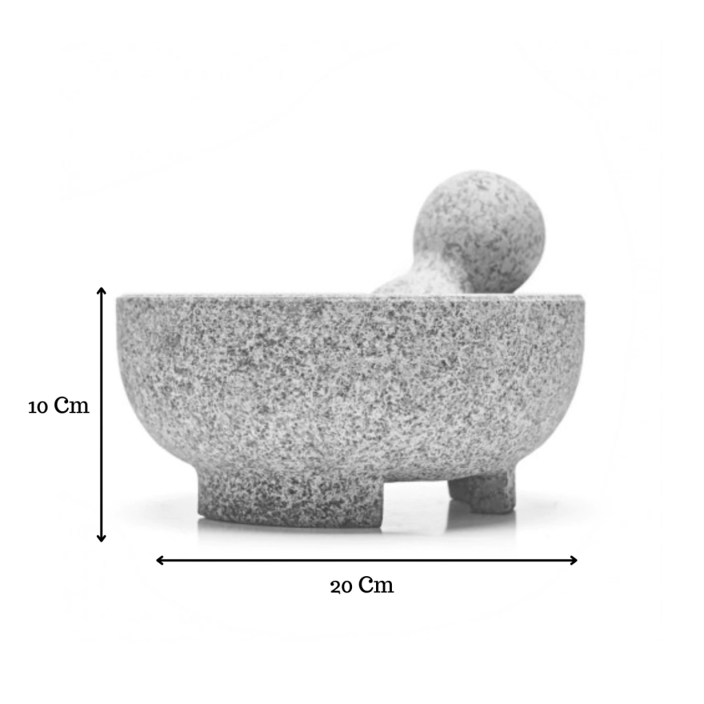 Este mortero no solo es una herramienta de cocina, sino también un elemento decorativo que aporta un toque rústico y auténtico a tu hogar. Ideal para quienes valoran la cocina tradicional y desean experimentar con técnicas ancestrales, el Mortero de Piedra con pilón Molcajete Grande es una inversión que transformará tu forma de cocinar.
