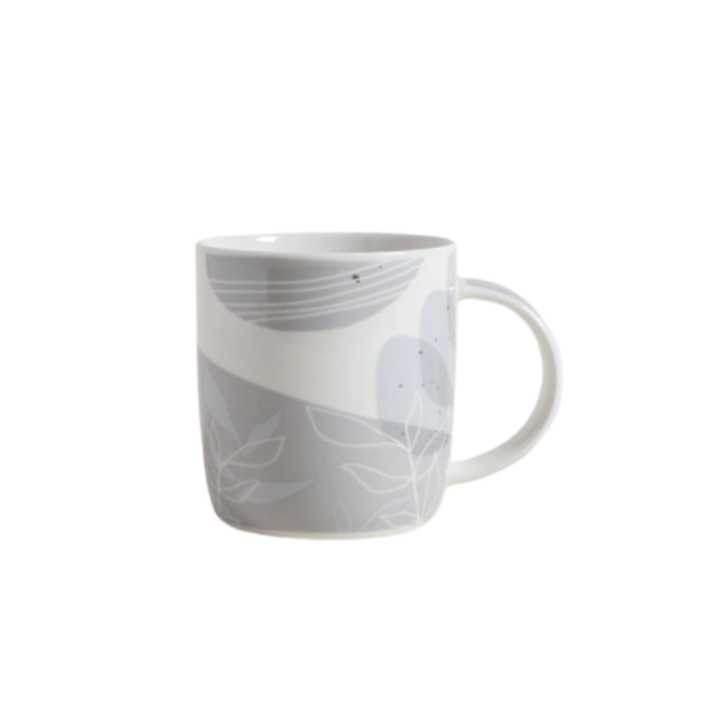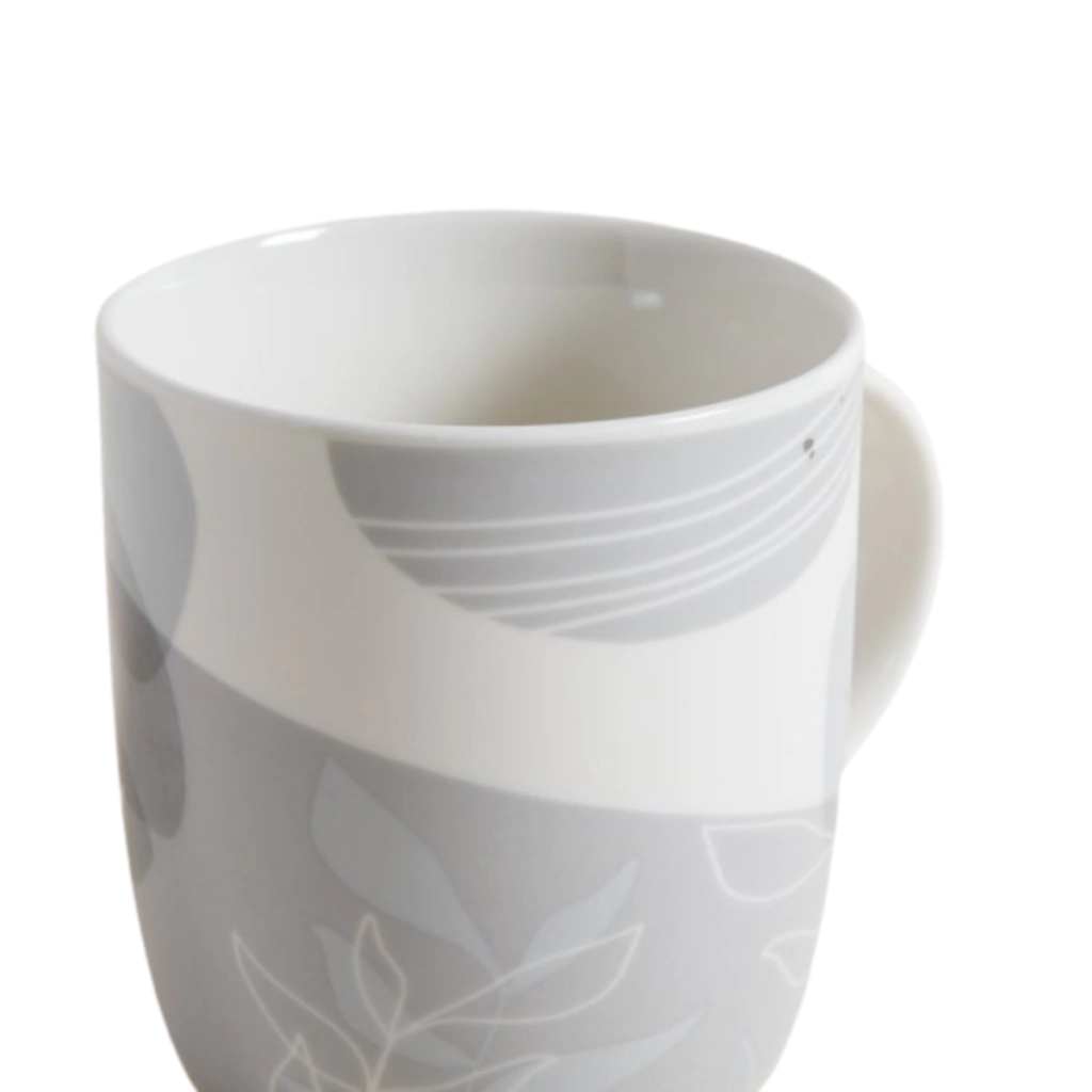 Mug de porcelana de excelente calidad color blanco con print en tonos grises.