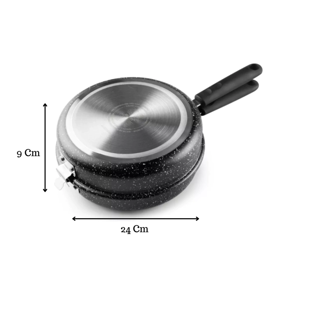 SARTÉN DOBLE PARA TORTILLAS EN ALUMINIO PARA INDUCCIÓN Y APTA PARA TODO TIPO DE COCINAS.