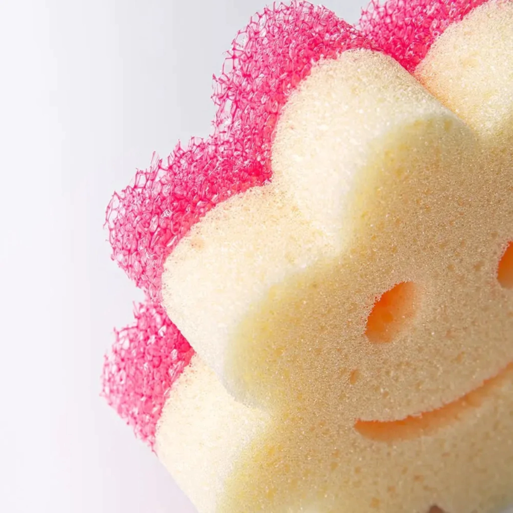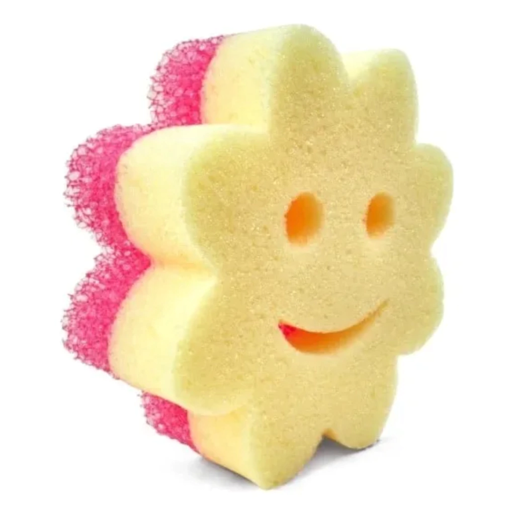 La Esponja Scrub Mommy Flower mantiene la misma forma ergonómica que la Original, pero con un diseño de dos lados. Su lado rosa FlexTexture® permite cambiar de textura según la temperatura del agua:  se endurece en agua fría para una limpieza fuerte sin rayones y se ablanda en agua caliente para un lavado más suave. Su lado esponjoso ResoFoam® es ideal para crear una espuma jabonosa y una limpieza más suave. Resistente a los olores y las manchas, manteniéndose en buen estado por más tiempo que las esponjas tradicionales. Se enjuaga fácilmente y se seca rápidamente evitando el crecimiento de bacterias.