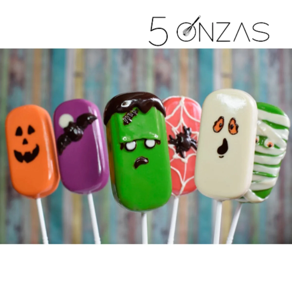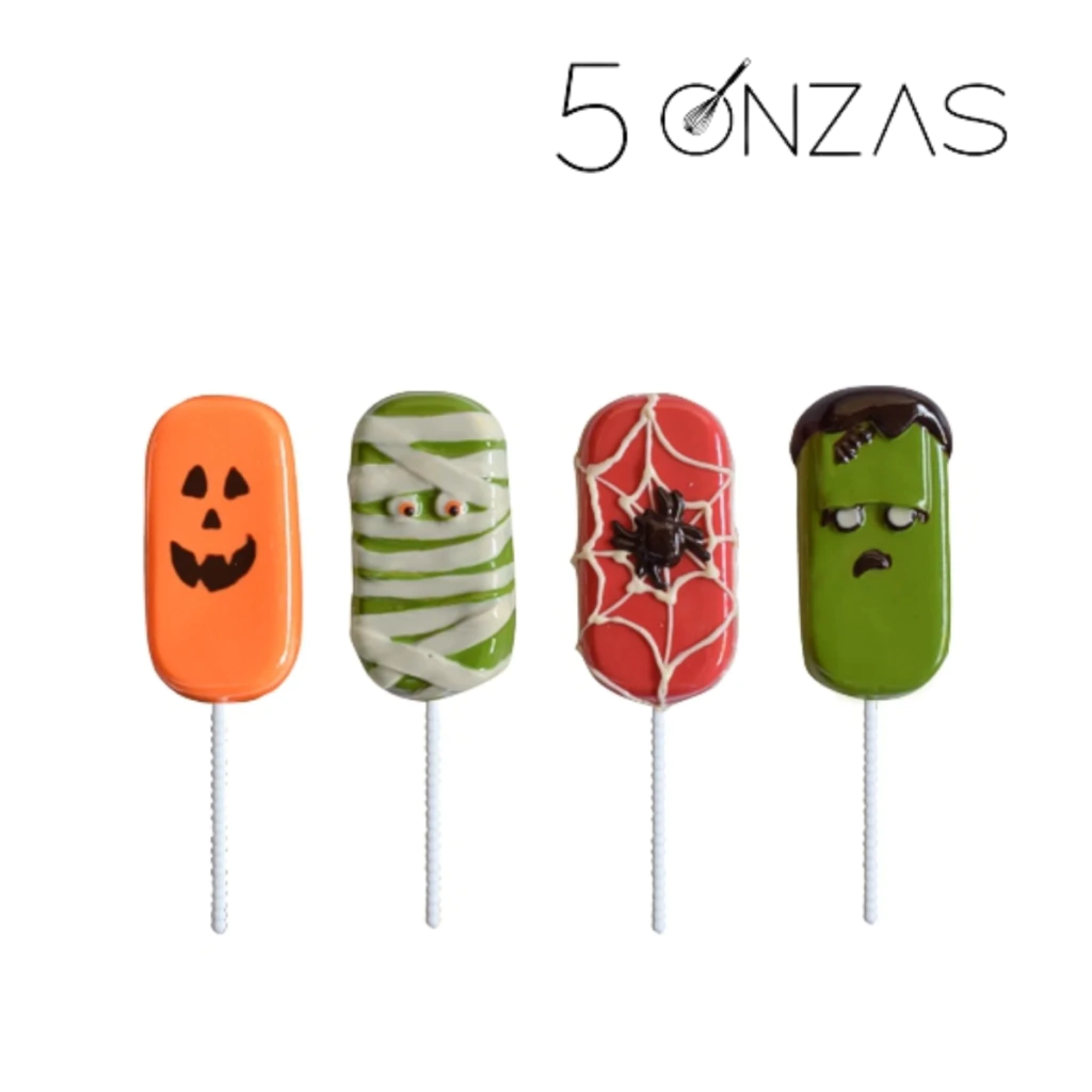 "Set compuesto de 2 moldes placas plásticos, para realizar 4 paletas rellenas con cobertura de chocolate, una con carita ""momia"", otra con carita ""frankenstein"" y dos lisas con accesorios de murciélago y araña. MEDIDAS: LARGO: 9.5CM ANCHO: 4.5CM. PROFUNIDAD: 1.5CM. ARAÑA: 2.3X2.5CM. MURCIELAGO: 2X5CM. CALABAZA: 3.5X4CM.";;;
