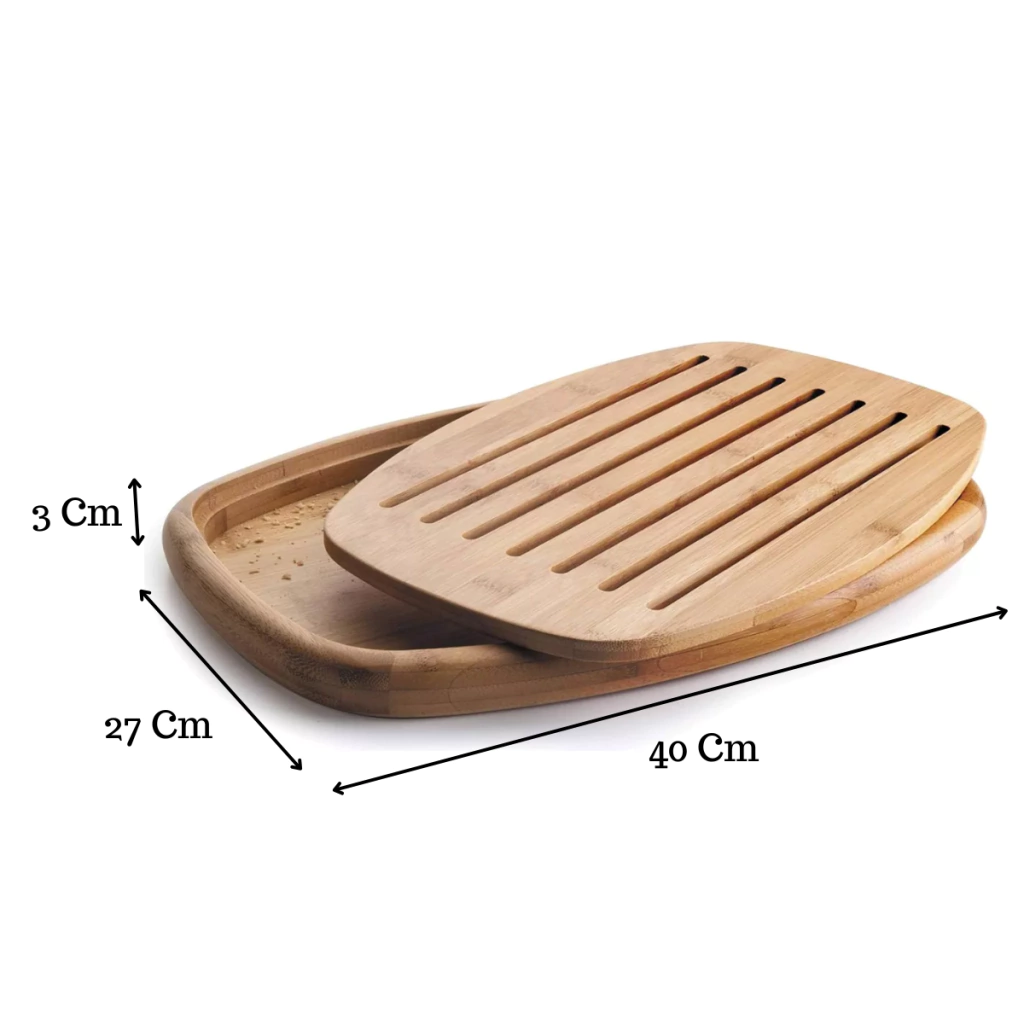 Fabricada en bambú, este material no solo es duradero, sino que también es una opción ecológica y libre de BPA, garantizando la seguridad en la preparación de tus alimentos. La tabla incluye una canaleta que recoge los restos de pan y migas, facilitando la limpieza y manteniendo tu área de trabajo ordenada.